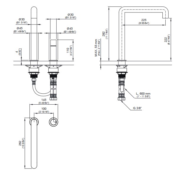 CEA Cartesio Bateria umywalkowa 2-otworowa z obrotową wylewką H28 cm Satin Stainless Steel CAR06S