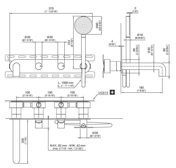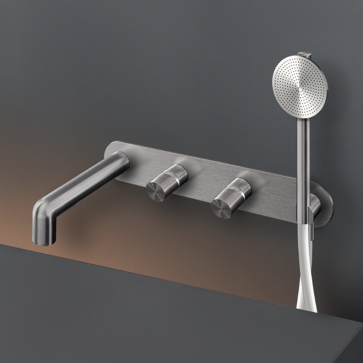 CEA Cartesio Bateria wannowa ścienna z wylewką, słuchawką i wężem element zewnętrzny Satin Stainless Steel CAR51HWS