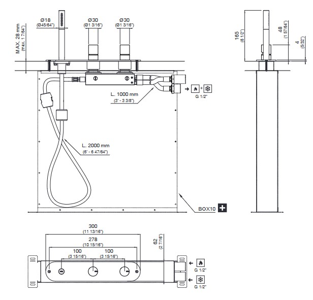 CEA Cartesio Bateria wannowa 3-otworowa na brzeg wanny ze słuchawką prysznicową element zewnętrzny Satin Stainless Steel CAR52S