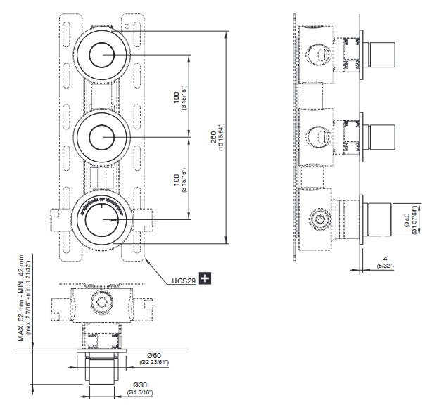 CEA Cartesio Bateria prysznicowa ścienna termostatyczna z 2 zaworami odcinającymi element zewnętrzny Satin Stainless Steel CAR67S