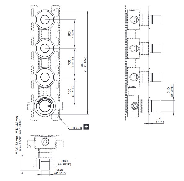 CEA Cartesio Bateria prysznicowa ścienna termostatyczna z 3 zaworami odcinającymi element zewnętrzny Satin Stainless Steel CAR68S