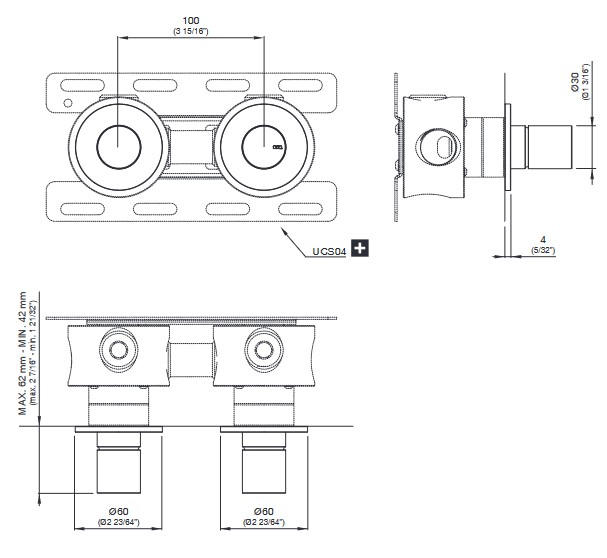 CEA Cartesio Zawór odcinający (para) ścienny mieszający element zewnętrzny Satin Stainless Steel CAR44S