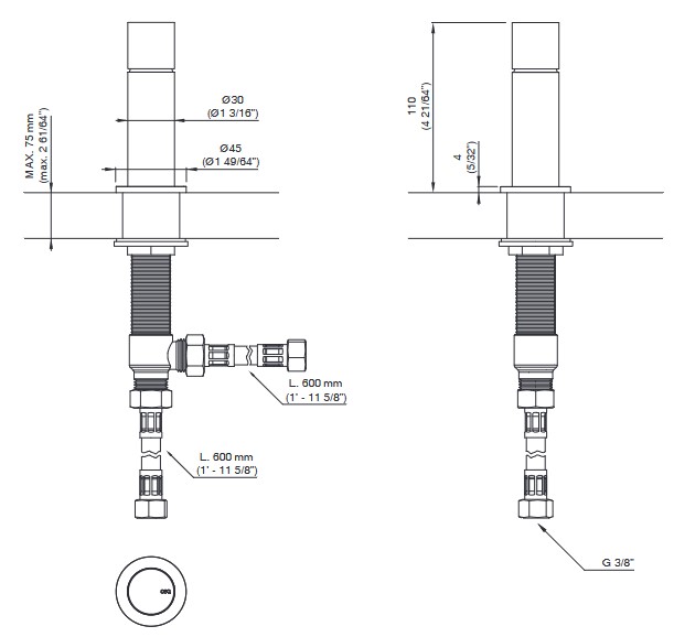 CEA Cartesio Zawór odcinający jednootworowy zimna woda Satin Stainless Steel CAR43S