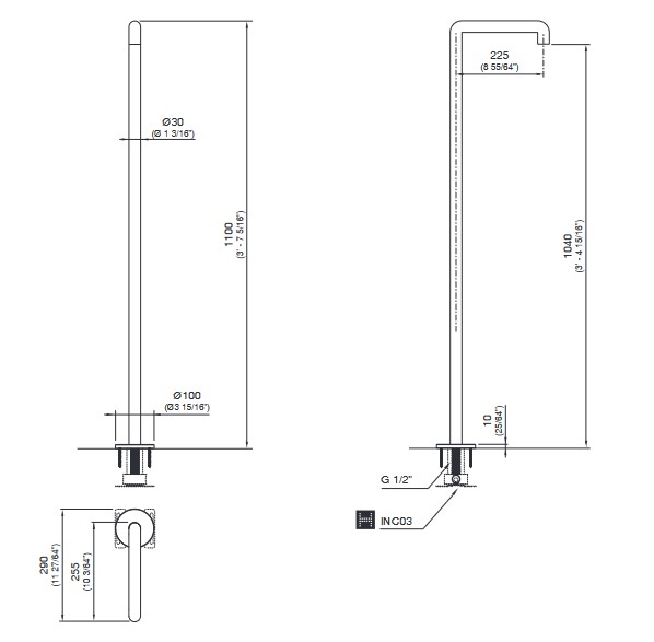 CEA Cartesio Wylewka umywalkowa wolnostojąca element zewnętrzny Satin Stainless Steel CAR20S