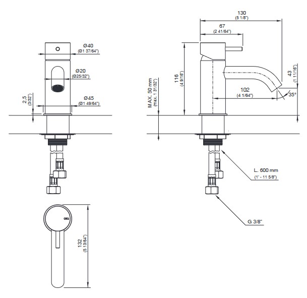 CEA Milo360 Bateria umywalkowa jednootworowa H11,5 cm Satin Stainless Steel MIL12S