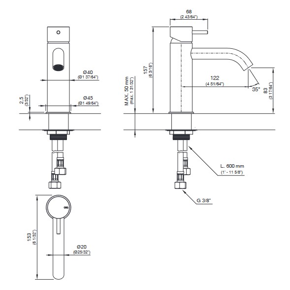 CEA Milo360 Bateria umywalkowa jednootworowa H15,5 cm Satin Stainless Steel MIL16S