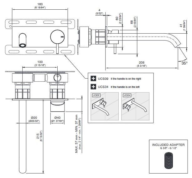 CEA Milo360 Bateria umywalkowa ścienna z wylewką 21,5 cm element zewnętrzny Satin Stainless Steel MIL105S