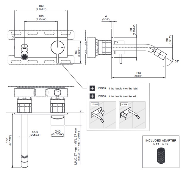 CEA Milo360 Bateria bidetowa ścienna z regulowaną wylewką 16,5 cm element zewnętrzny Satin Stainless Steel MIL09S