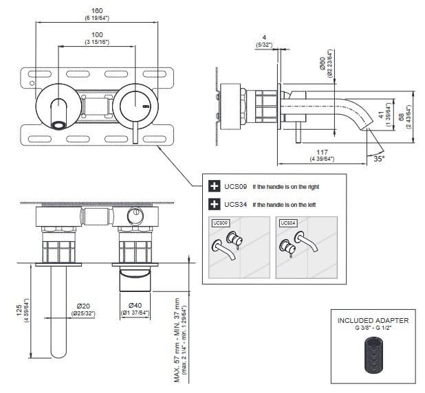 CEA Milo360 Bateria umywalkowa ścienna z wylewką 12,5 cm element zewnętrzny Satin Stainless Steel MIL34S