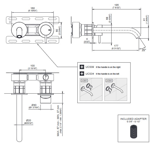 CEA Milo360 Bateria umywalkowa ścienna z wylewką 18,5 cm element zewnętrzny Satin Stainless Steel MIL35S