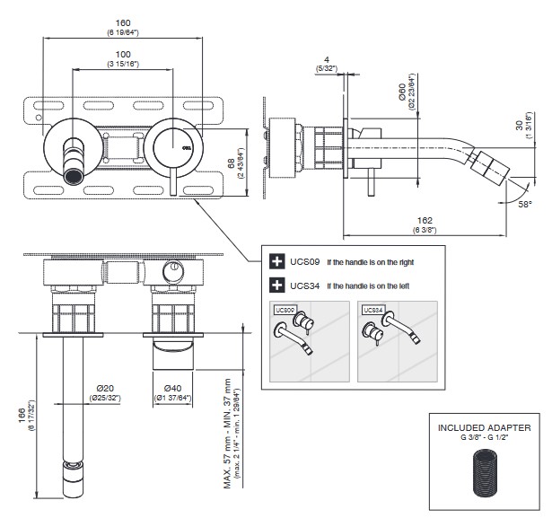 CEA Milo360 Bateria bidetowa ścienna z regulowaną wylewką 16,5 cm element zewnętrzny Satin Stainless Steel MIL36S