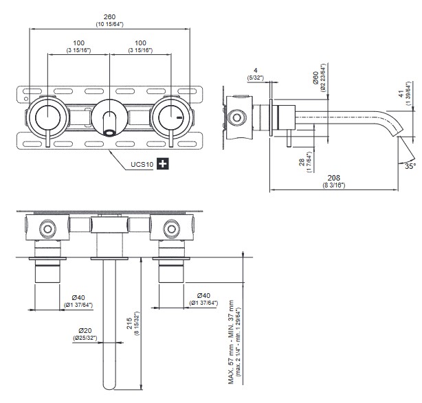 CEA Milo360 Bateria umywalkowa ścienna z wylewką 21,5 cm element zewnętrzny Satin Stainless Steel MIL107S