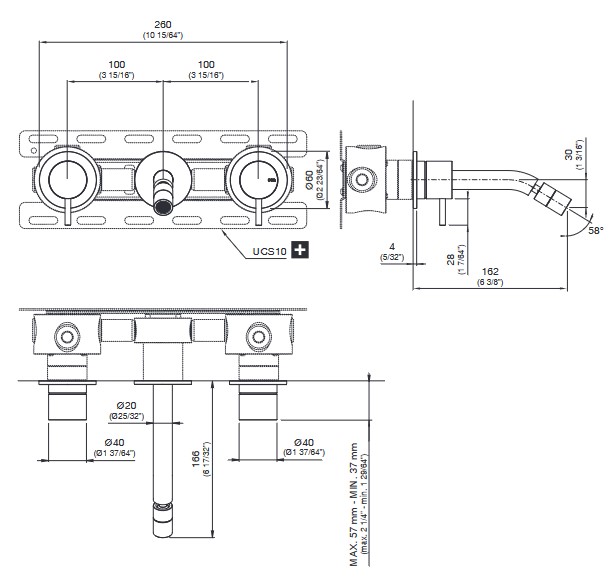 CEA Milo360 Bateria bidetowa ścienna z regulowaną wylewką 16,5 cm element zewnętrzny Satin Stainless Steel MIL39S