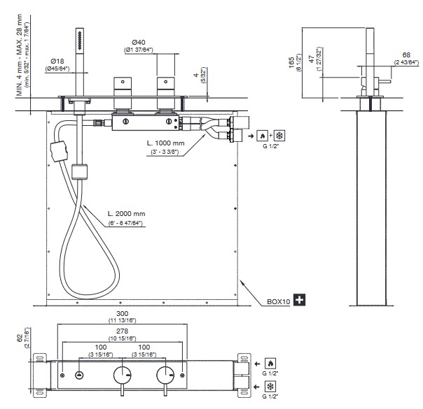 CEA Milo360 Bateria wannowa 3-otworowa na brzeg wanny ze słuchawką prysznicową element zewnętrzny Satin Stainless Steel MIL87S