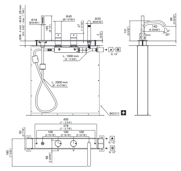 CEA Milo360 Bateria wannowa 4-otworowa na brzeg wanny z wylewką i słuchawką prysznicową element zewnętrzny Satin Stainless Steel MIL88S