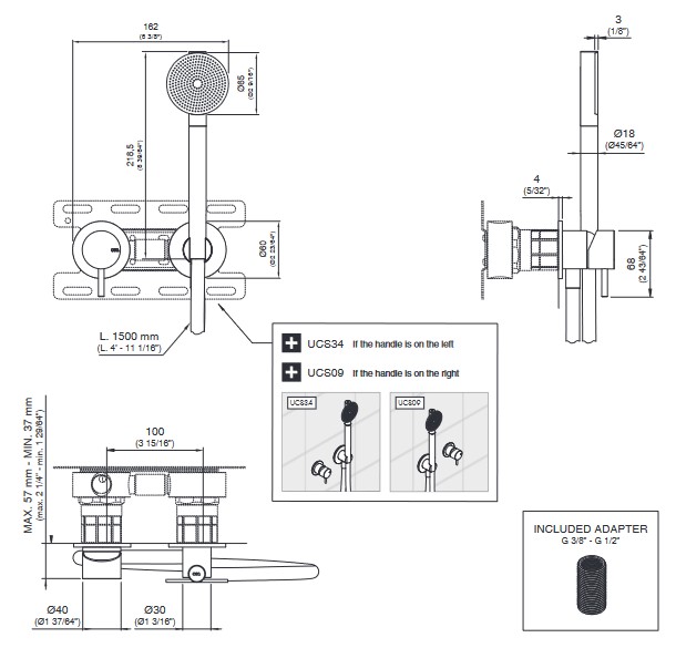 CEA Milo360 Bateria wannowa/prysznicowa ścienna z słuchawką i wężem element zewnętrzny Satin Stainless Steel MIL144YWS