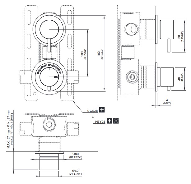 CEA Milo360 Bateria prysznicowa ścienna termostatyczna z zaworem odcinającym element zewnętrzny Satin Stainless Steel MIL121S