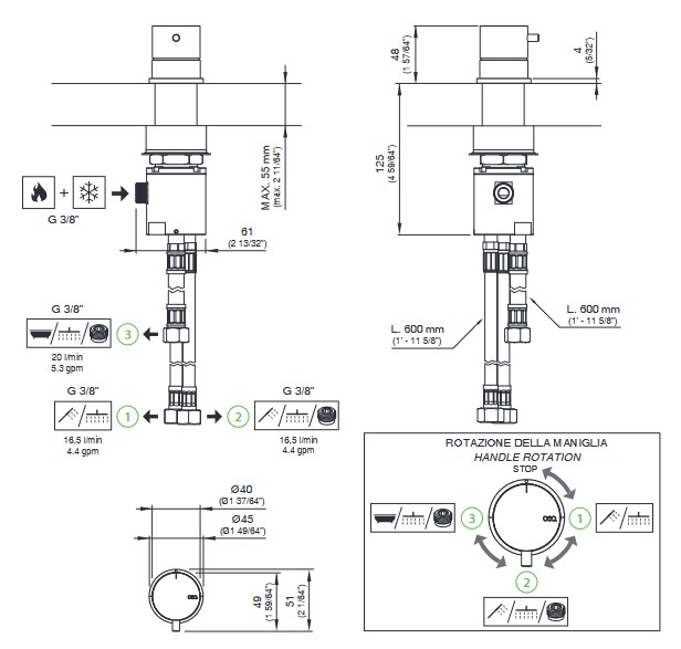 CEA Milo360 Przełącznik jednootworowy 2/3-drożny Satin Stainless Steel DEV04S