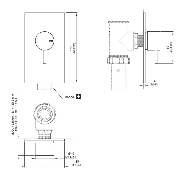 CEA Milo360 Zawór odcinający ścienny z zaworem spłukującym element zewnętrzny Satin Stainless Steel MIL150S