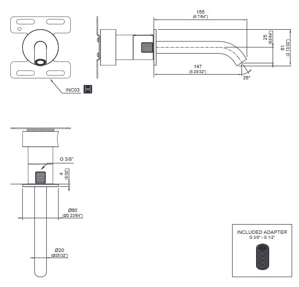 CEA Milo360 Wylewka umywalkowa ścienna 15,5 cm element zewnętrzny Satin Stainless Steel MIL137S