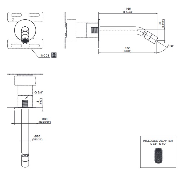 CEA Milo360 Wylewka bidetowa regulowana ścienna 16,5 cm element zewnętrzny Satin Stainless Steel MIL47S