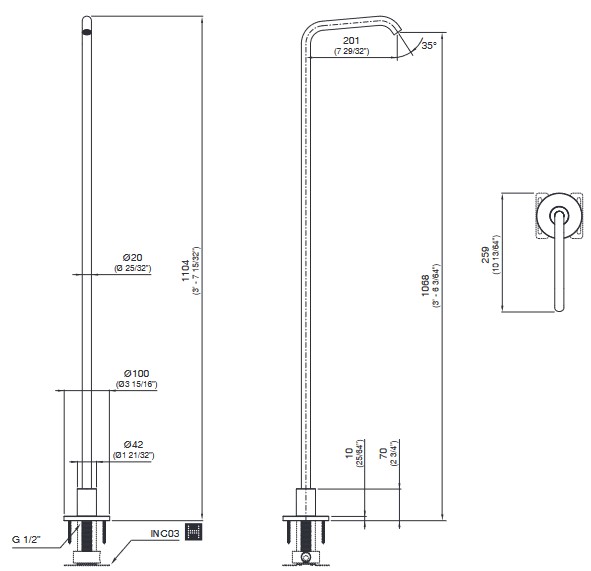 CEA Milo360 Wylewka umywalkowa wolnostojąca element zewnętrzny Satin Stainless Steel MIL72S