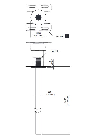 CEA Milo360 Wylewka umywalkowa sufitowa H165 cm element zewnętrzny Satin Stainless Steel MIL73S