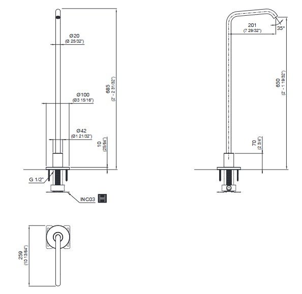 CEA Milo360 Wylewka wannowa wolnostojąca element zewnętrzny Satin Stainless Steel MIL139S