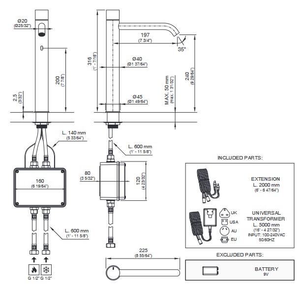 CEA Milo360 Bateria umywalkowa jednootworowa do umywalki nablatowej z czujnikiem ruchu H31,5 cm Satin Stainless Steel MIL017S