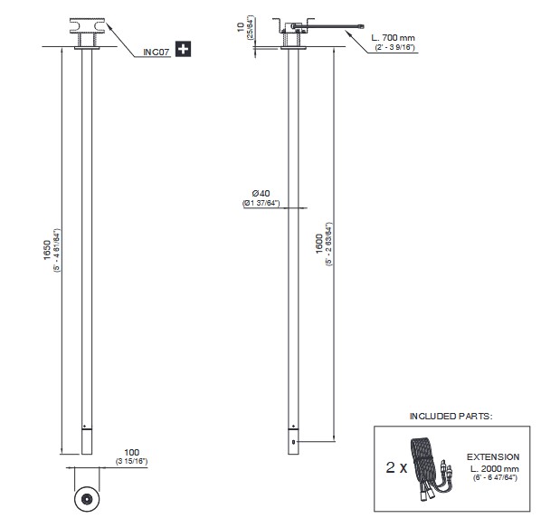 CEA Milo360 Bateria umywalkowa sufitowa z czujnikiem ruchu H165 cm element zewnętrzny Satin Stainless Steel MIL073S