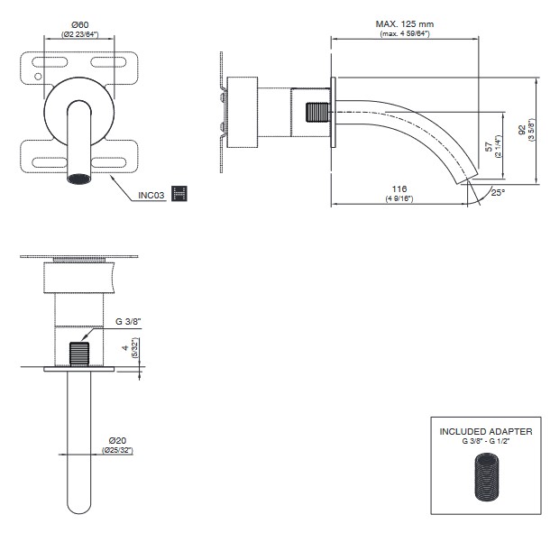 CEA Wylewka umywalkowa ścienna 12,5 cm element zewnętrzny Satin Stainless Steel FRE51S