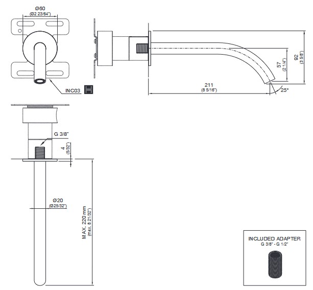 CEA Wylewka umywalkowa ścienna 22 cm element zewnętrzny Satin Stainless Steel FRE61S