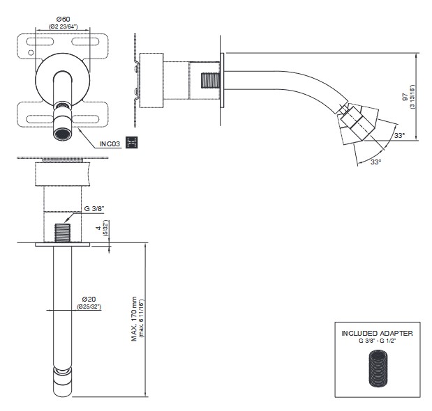 CEA Wylewka bidetowa ścienna 17 cm element zewnętrzny Satin Stainless Steel FRE53S