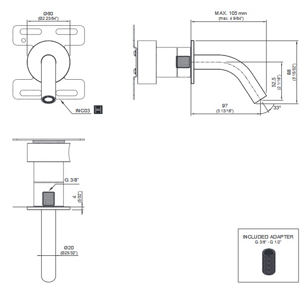 CEA Wylewka umywalkowa ścienna 10,5 cm element zewnętrzny Satin Stainless Steel FRE25S