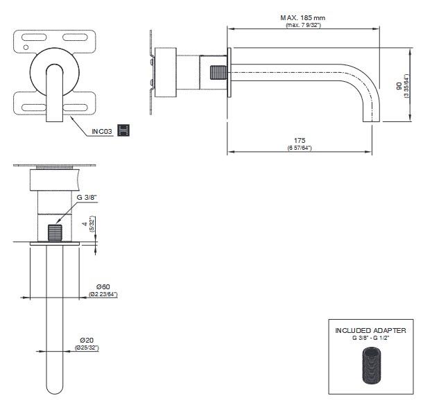 CEA Wylewka umywalkowa ścienna 18,5 cm element zewnętrzny Satin Stainless Steel FRE140S