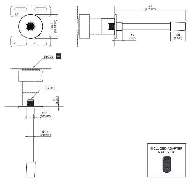CEA Wylewka umywalkowa ścienna elastyczna 17,5 cm element zewnętrzny Satin Stainless Steel FLX02WS