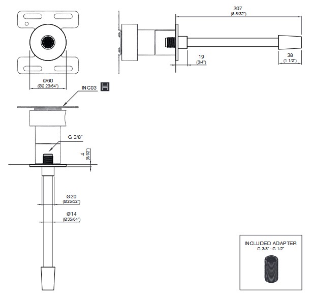 CEA Wylewka umywalkowa ścienna elastyczna 20,5 cm element zewnętrzny Satin Stainless Steel FLX09WS