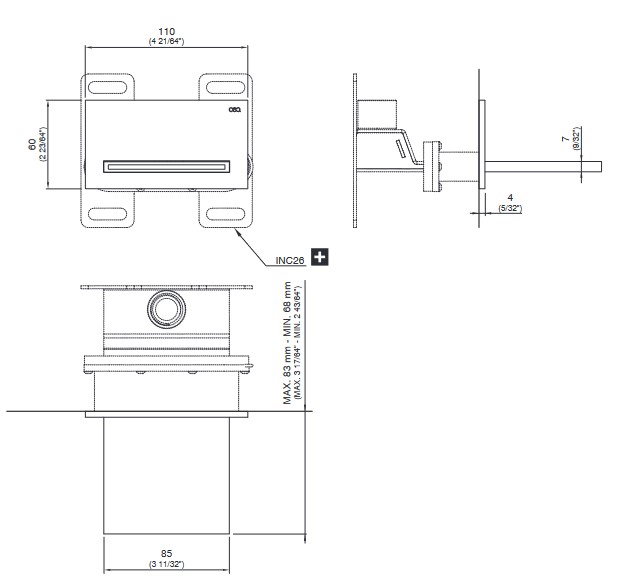 CEA Wylewka umywalkowa wodospadowa ścienna 6,8-8,3 cm element zewnętrzny Satin Stainless Steel FRE98S