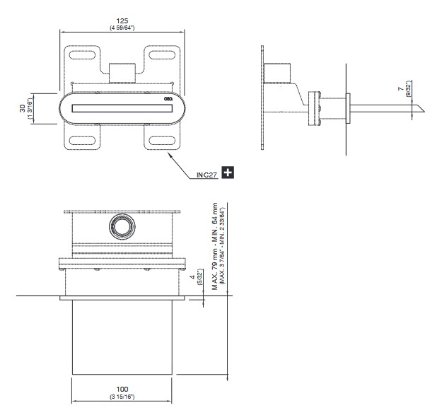 CEA Wylewka umywalkowa wodospadowa ścienna 6,4-7,9 cm element zewnętrzny Satin Stainless Steel FRE171S
