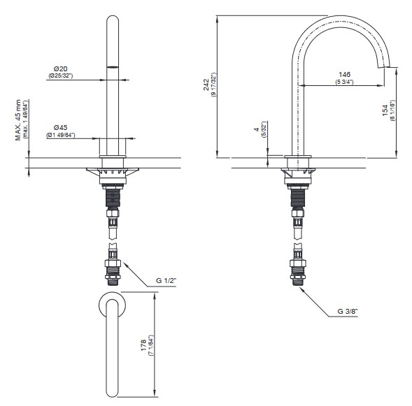 CEA Wylewka umywalkowa obrotowa jednootworowa H24,2 cm Satin Stainless Steel FRE54S