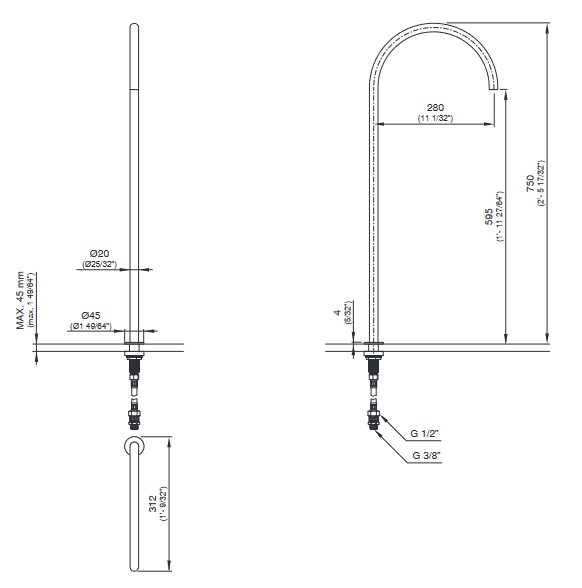 CEA Wylewka umywalkowa obrotowa jednootworowa H75 cm Satin Stainless Steel FRE206S