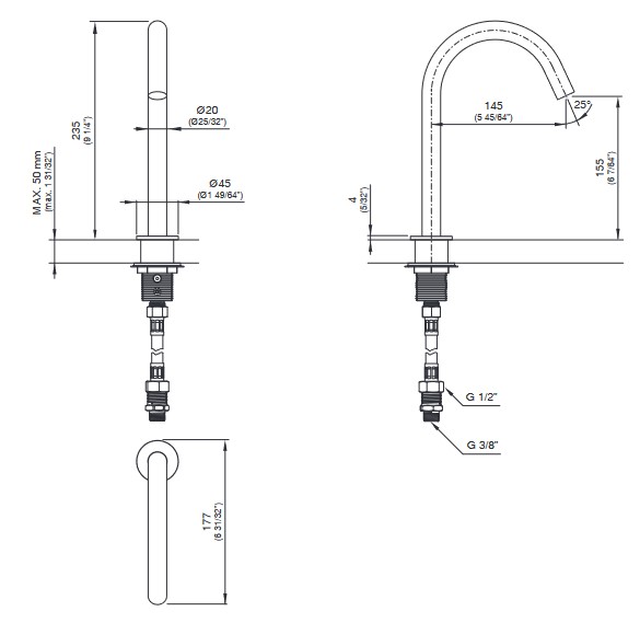 CEA Wylewka umywalkowa obrotowa jednootworowa H23,5 cm Satin Stainless Steel FRE106S