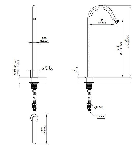 CEA Wylewka umywalkowa obrotowa jednootworowa H42,6 cm Satin Stainless Steel FRE108S