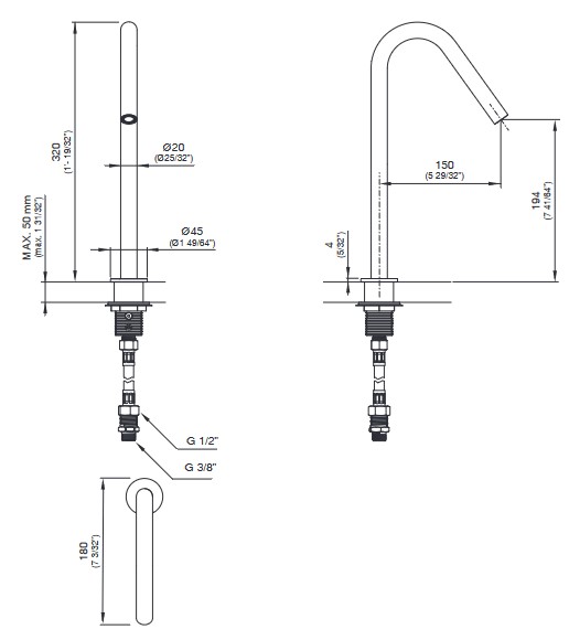 CEA Wylewka umywalkowa obrotowa jednootworowa H32 cm Satin Stainless Steel FRE07S