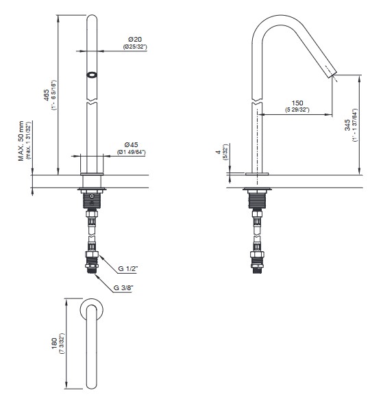 Wysokość wylewki: 34,5 cm