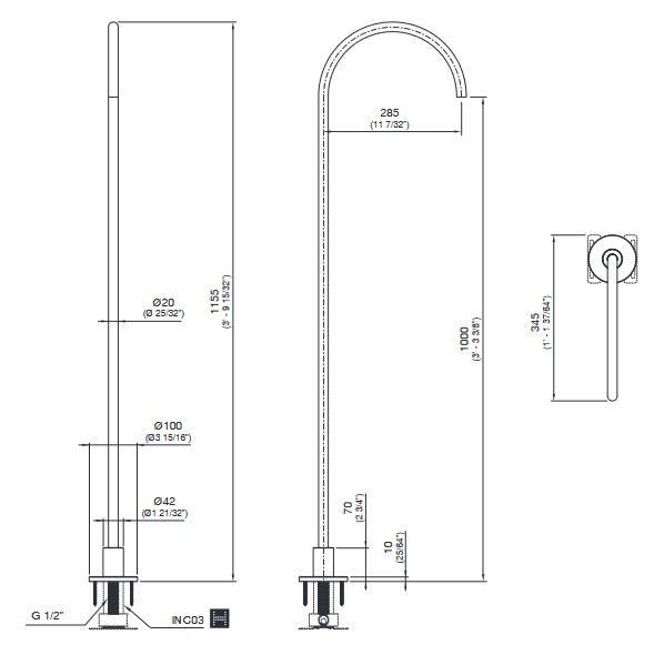 CEA Wylewka umywalkowa wolnostojąca element zewnętrzny Bronze Satin FRE209ZS