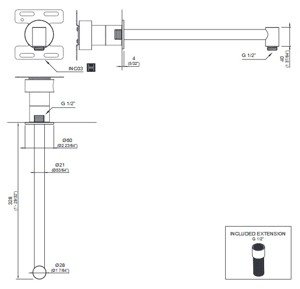 CEA Ramię prysznicowe ścienne 32,8 cm element zewnętrzny Satin Stainless Steel BRA07S