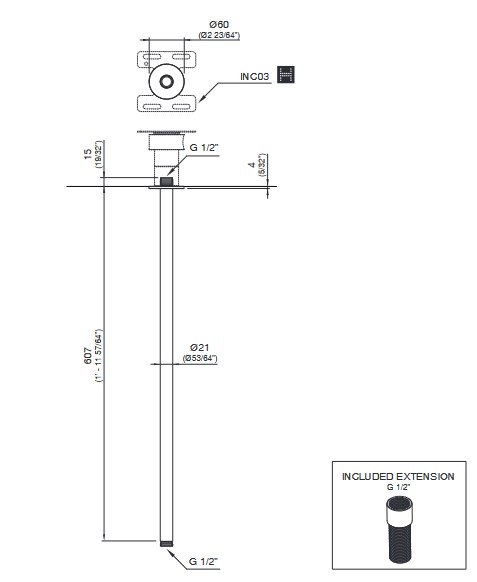CEA Ramię prysznicowe sufitowe 60,7 cm element zewnętrzny Satin Stainless Steel BRA06S