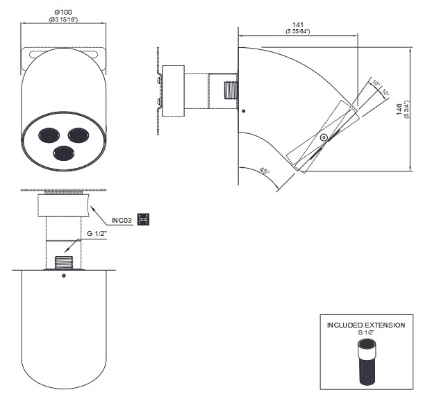 CEA Deszczownica regulowana ścienna element zewnętrzny Satin Stainless Steel FRE152S