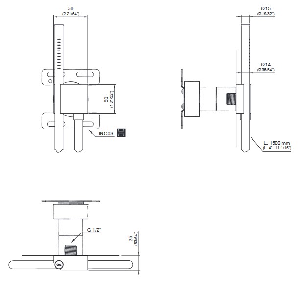CEA Słuchawka prysznicowa z kolorowej gumy silikonowej ze wspornikiem i przyłączem wody element zewnętrzny Satin Stainless Steel SWI07WS